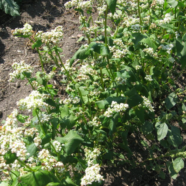 Buckwheat is a quick establishing crop with excellent weed suppression. Flowering occurs quickly and is extended for upwards of 10 weeks which attracts pollinator insects. As a cover crop, Buckwheat is known for its ability to extract phosphorus from the soil.