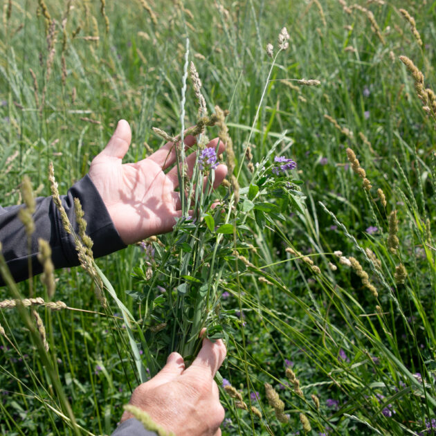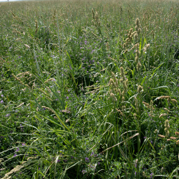 The Hamilton is a blend of cool-season grasses and alfalfa designed for areas of high salinity and pH. The grasses in The Hamilton are extremely salt-tolerant and our SalinityMax alfalfa has proven to handle these conditions as well. We have worked with producers facing saline issues for years and the best solution to these areas is to get perennial vegetation back on those soils. Grasses and alfalfa will establish root systems to help water infiltration and their perennial growth will cycle excess salts which over time can improve the quality of soil. The Hamilton is suitable for grazing or haying and performs well in otherwise unproductive areas.